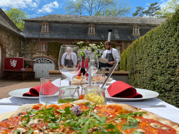 Neu in unserem Angebot sind kulinarische Outdoor-Specials für Firmenveranstaltungen und private Feste. Feiern Sie mit Freund*innen und/oder Kolleg*innen und lassen Sie sich von unseren beiden Köchen und dem Serviceteam verwöhnen. Hierzu bietet sich der Außenbereich vor unserer historischen Scheune an, die bei schlechtem Wetter als Zufluchtsort genutzt werden kann. Unser kulinarisches Angebot reicht dabei von Pizza und Flammkuchen aus dem Holzofen über Grillen (auch vegan) bis hin zum Outdoor-Cooking über einer Feuerstelle.